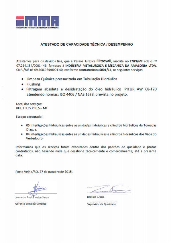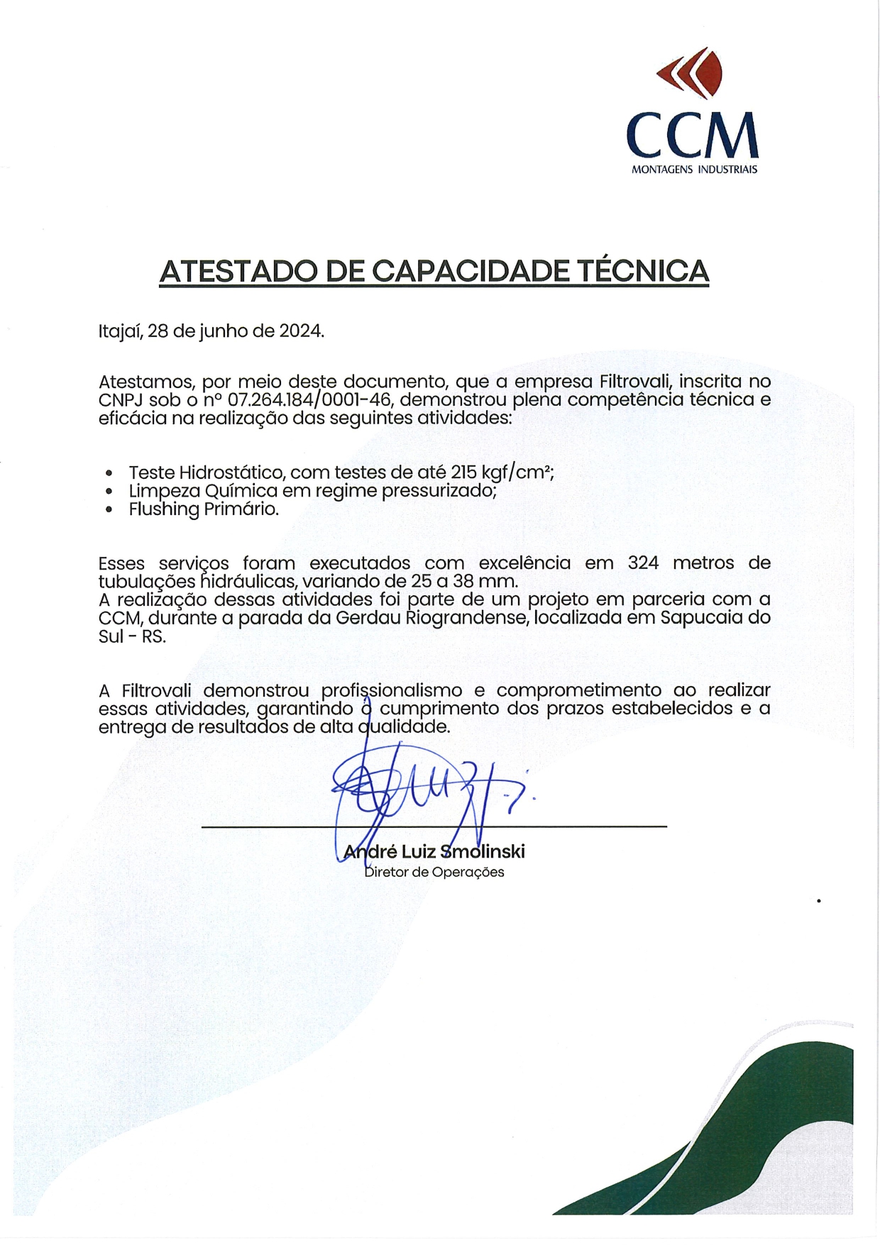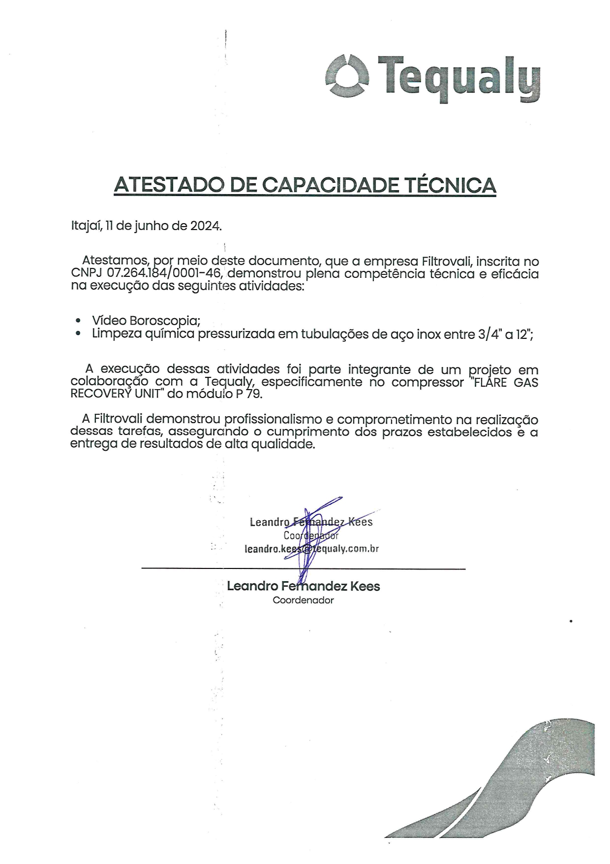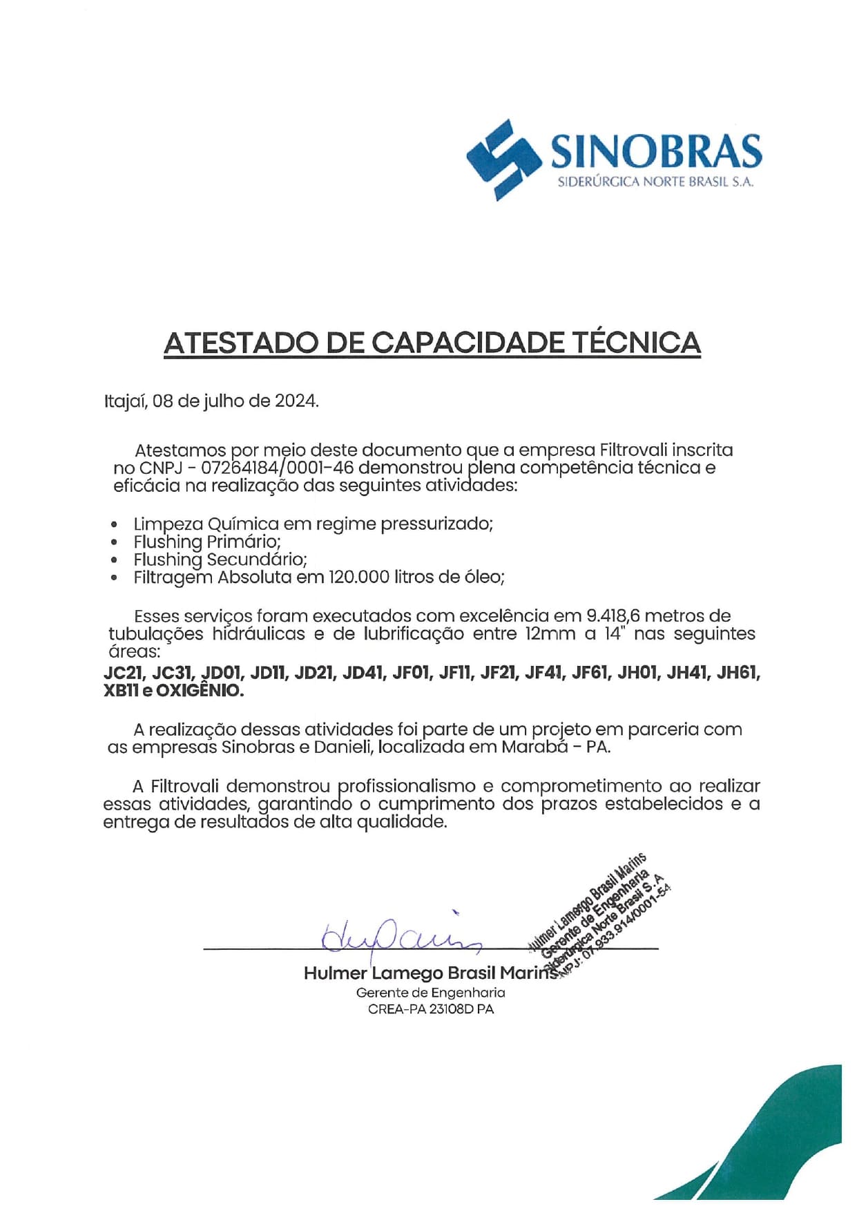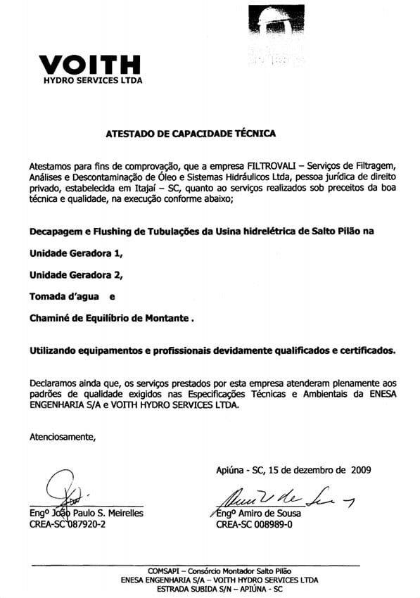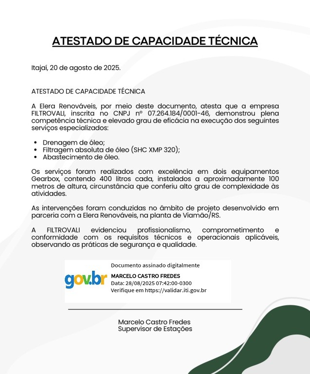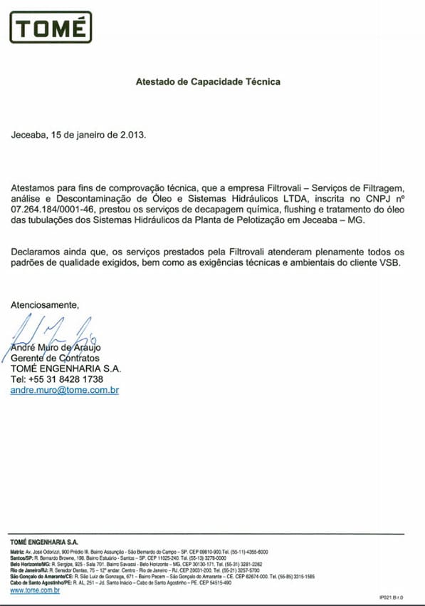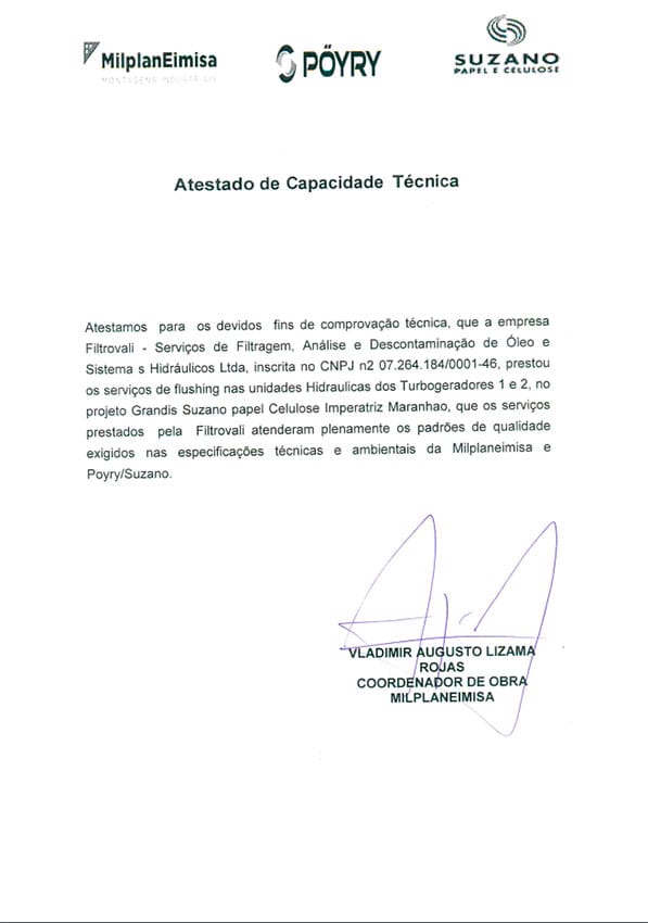 Confira os atestados de capacidade técnica da Filtrovali, que comprovam nossa proficiência em todas as áreas que atuamos.