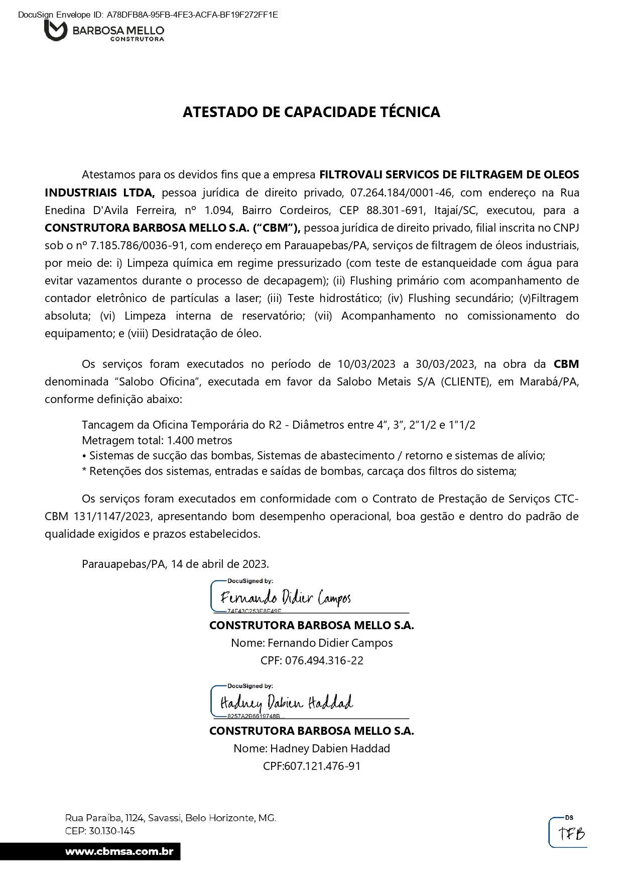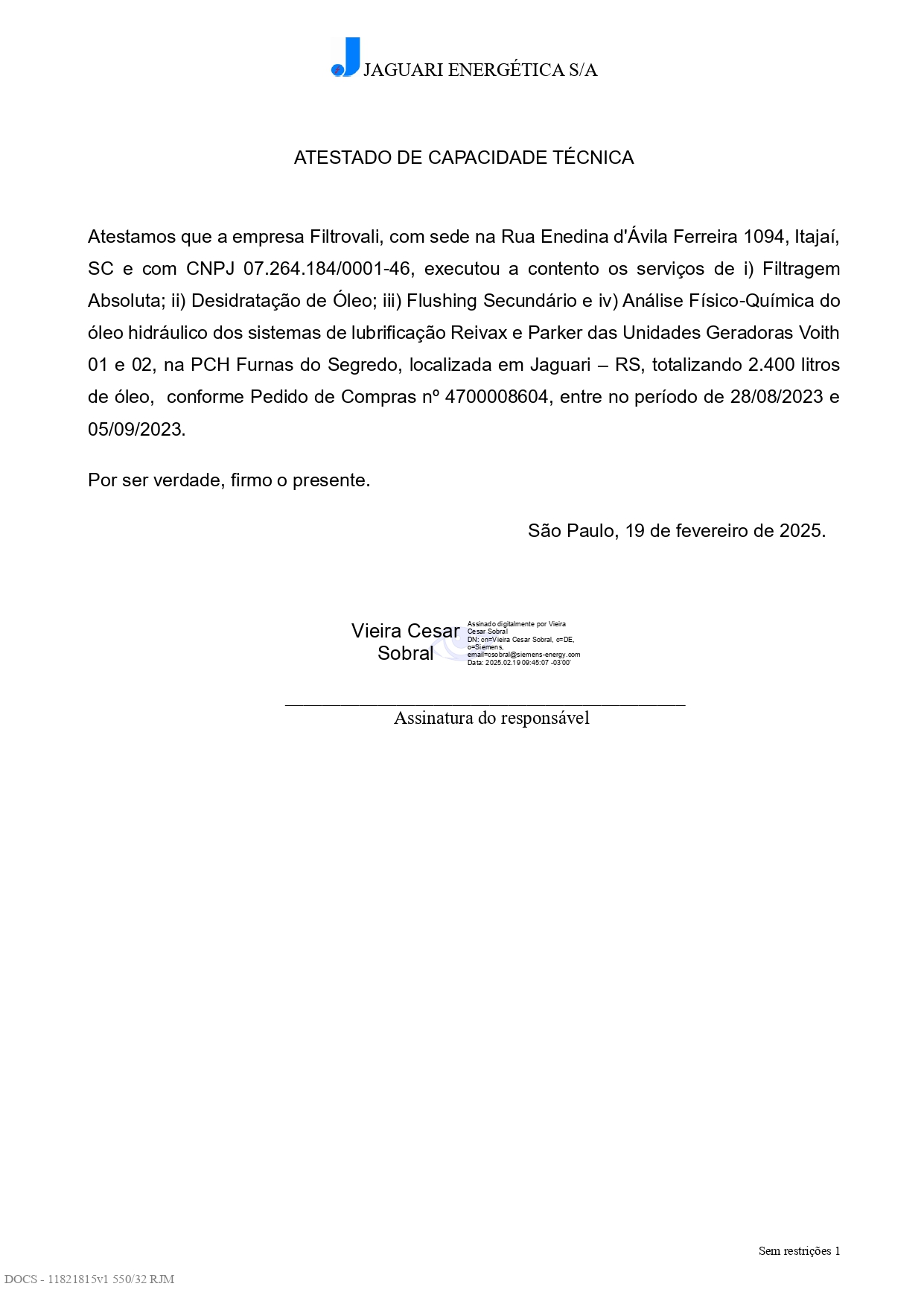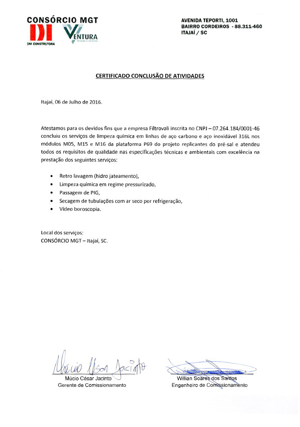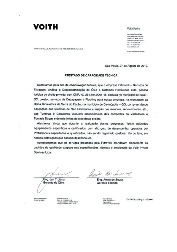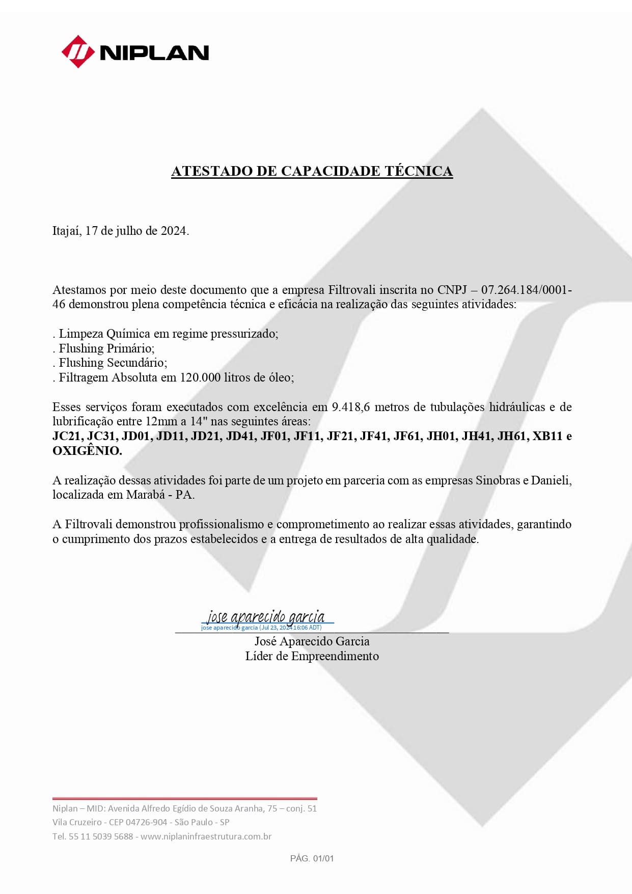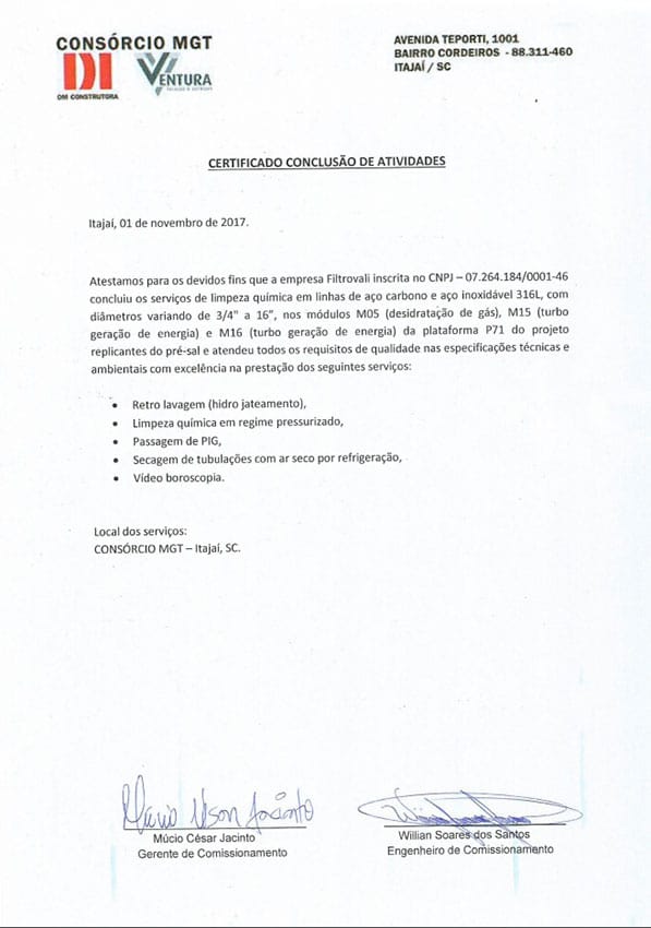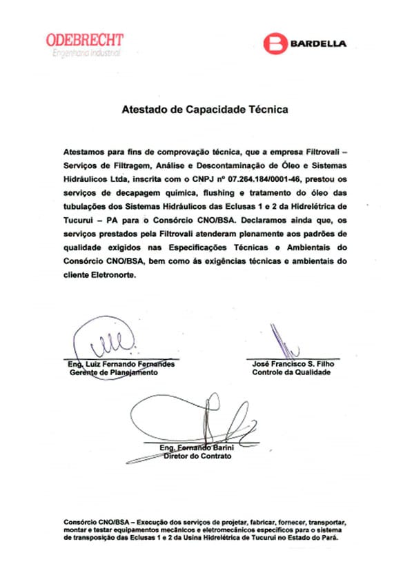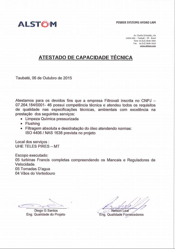 Confira os atestados de capacidade técnica da Filtrovali, que comprovam nossa proficiência em todas as áreas que atuamos.